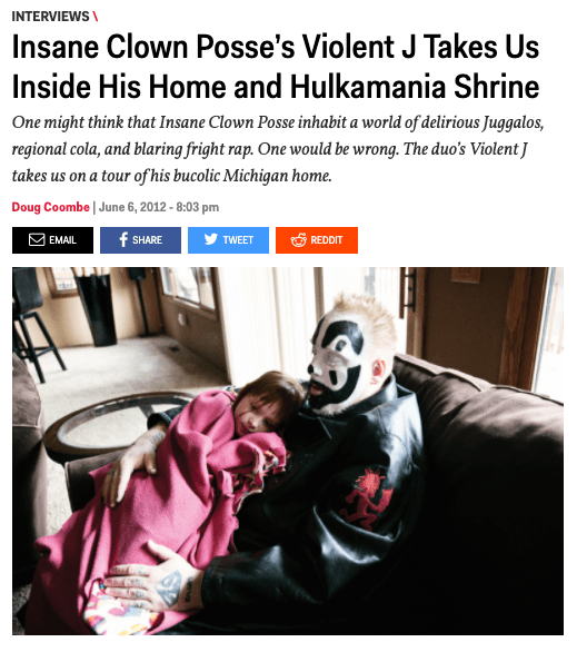 SPIN Magazine: Insane Clown Posse – In My Room Feature Posted by reneepublicityplease on September 11, 2012October 1, 2020 In SPIN. Share this: Click to share on X (Opens in new window) X Click to share on Facebook (Opens in new window) Facebook Like Loading... Related