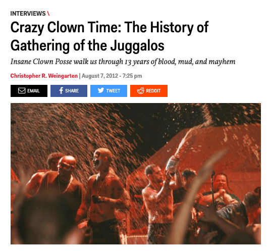 SPIN Magazine: Insane Clown Posse Interview Posted by reneepublicityplease on September 11, 2012October 1, 2020 In SPIN. Share this: Share on X (Opens in new window) X Share on Facebook (Opens in new window) Facebook Like Loading... Related