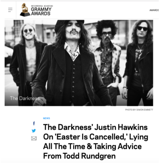 Grammys: Interview The Darkness frontman Justin Hawkins Posted by reneepublicityplease on September 9, 2019October 1, 2020 Read the Grammy Awards interview. Share this: Share on X (Opens in new window) X Share on Facebook (Opens in new window) Facebook Like Loading... Related