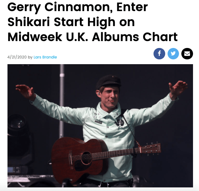 Billboard: Gerry Cinnamon UK No. 1 Album Posted by reneepublicityplease on May 9, 2020October 1, 2020 https://www.billboard.com/articles/news/9362335/gerry-cinnamon-enter-shikari-midweek-u-k-albums-chart?utm_source=facebook&utm_medium=social&fbclid=IwAR3jMR_Qx1i-7wLxA6Gf4Ohffd2L1Pf-SDSUcBBIKbLJpfhTiHb_BR2MAzE https://www.billboard.com/articles/news/9362335/gerry-cinnamon-enter-shikari-midweek-u-k-albums-chart?utm_source=facebook&utm_medium=social&fbclid=IwAR3jMR_Qx1i-7wLxA6Gf4Ohffd2L1Pf-SDSUcBBIKbLJpfhTiHb_BR2MAzE Share this: Click to share on X (Opens in new window) X Click to share on Facebook (Opens in new window) Facebook Like Loading... Related
