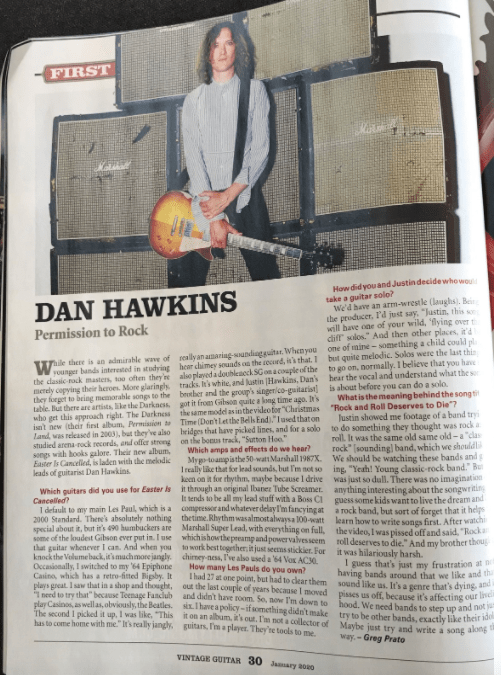 Vintage Guitar Magazine: Dan Hawkins of The Darkness Interview Posted by reneepublicityplease on September 1, 2020January 21, 2021 Feature in January 2020 issue Share this: Click to share on X (Opens in new window) X Click to share on Facebook (Opens in new window) Facebook Like Loading... Related