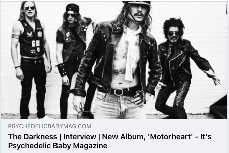 It’s Psychedelic Baby Magazine: Motorheart Tour Interview with The Darkness Posted by reneepublicityplease on March 4, 2022 Read more. Share this: Click to share on X (Opens in new window) X Click to share on Facebook (Opens in new window) Facebook Like Loading... Related