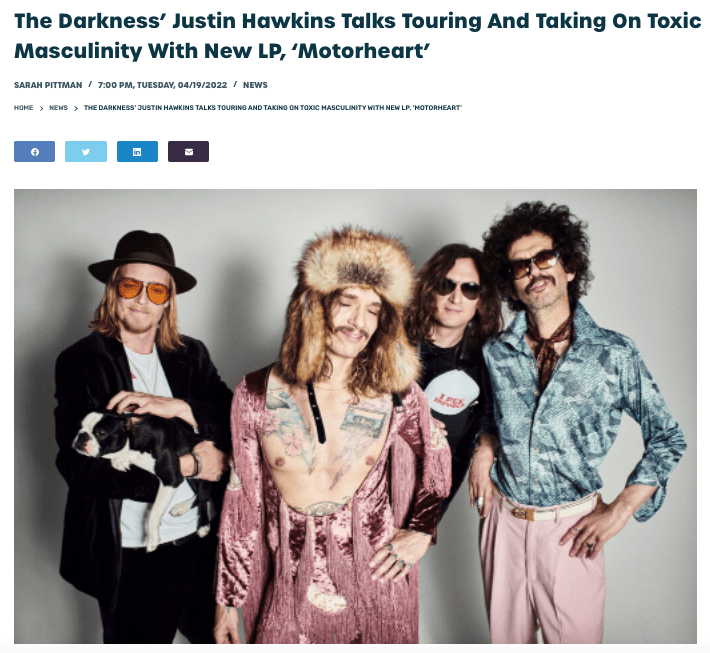 Pollstar: The Darkness’ Justin Hawkins Talks Touring Posted by reneepublicityplease on April 20, 2022 Read more. Share this: Share on X (Opens in new window) X Share on Facebook (Opens in new window) Facebook Like Loading... Related