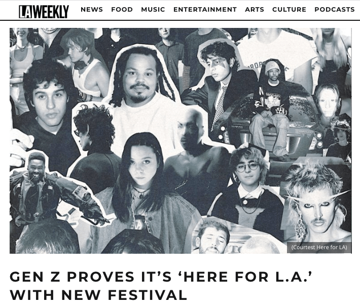 LA Weekly: Gen Z Proves It’s “Here for LA” With New Festival Posted by reneepublicityplease on December 2, 2022 Read more. Share this: Share on X (Opens in new window) X Share on Facebook (Opens in new window) Facebook Like Loading... Related