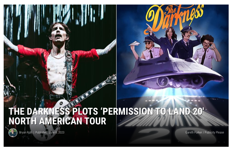 Ultimate Classic Rock: The Darkness Plots Permission To Land 20 North American Tour Posted by reneepublicityplease on June 7, 2023 Read more. Share this: Share on X (Opens in new window) X Share on Facebook (Opens in new window) Facebook Like Loading... Related